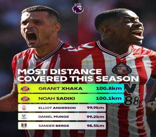 雷速体育10月29日宣 本赛季英超前9轮比赛已全部战罢,英超官方于今天列出了一份赛季至今球员跑动距离的排名榜单。在这份榜单中只有扎卡与萨迪基两位球员的跑动距离超过了100km,而他们正好都来自黑猫桑德兰。目前桑德兰位列英超第4,黑猫回到英超的第一赛季便取得如此令人惊喜的成绩,这与球员不惜体力的跑动所带来的活力息息相关。