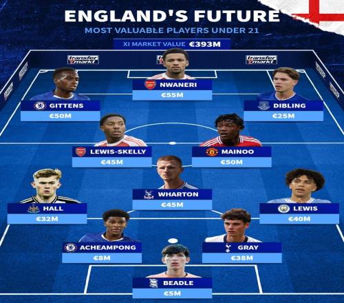 德转英格兰U21最贵阵容:恩瓦内里、梅努、刘易斯等人在列